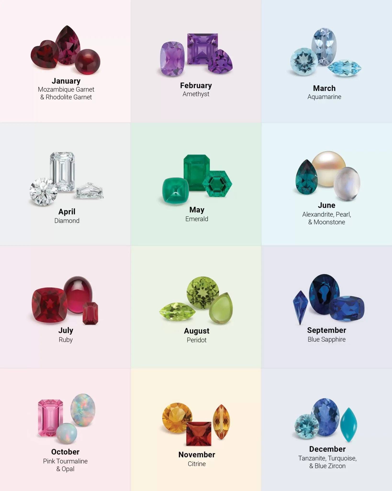 January – Garnet: represents friendship, protection, and vitality.
